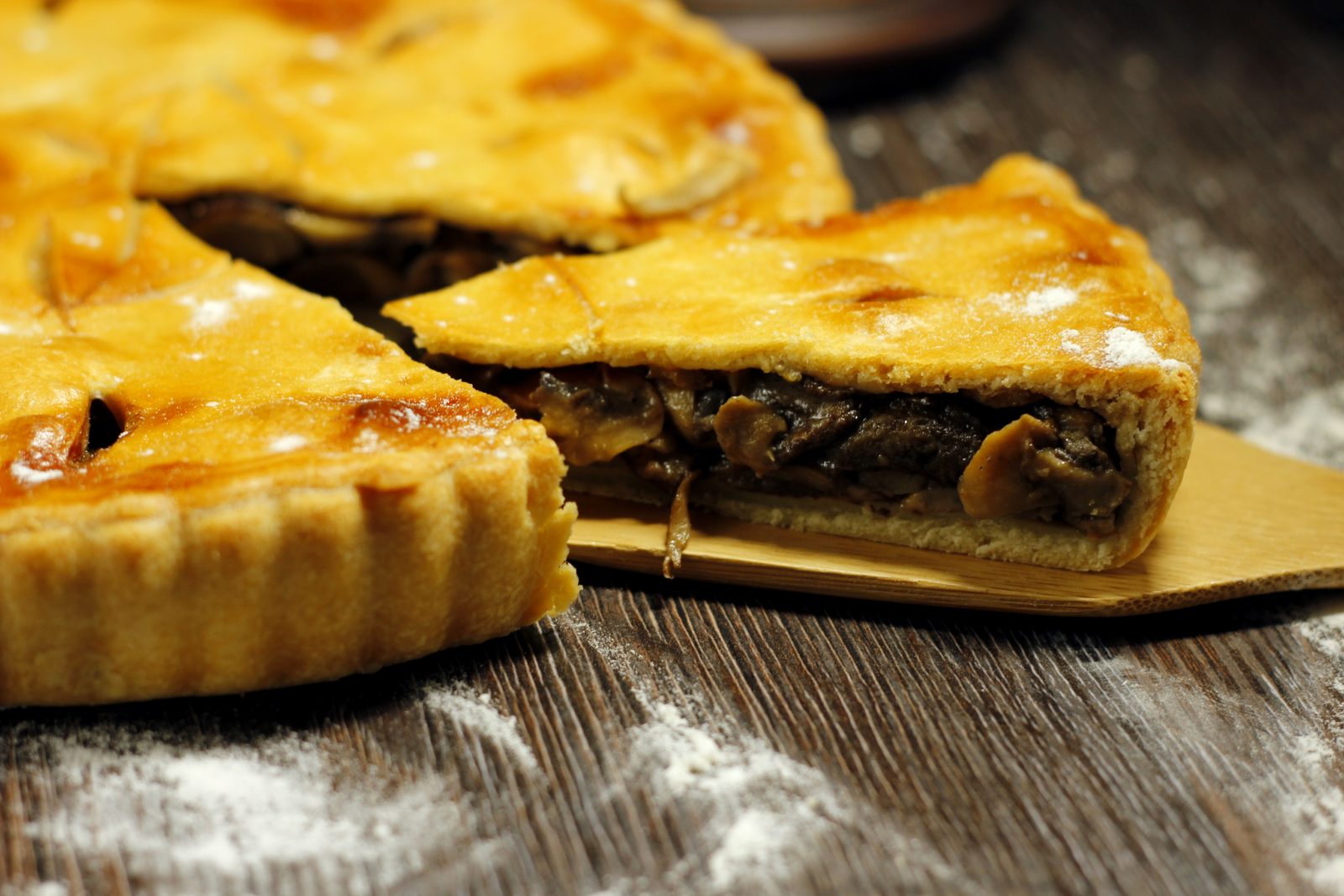 Praeme metsaseened ja šampinjonid koos sibulaga, maitsestame värskelt jahvatatud pipraga, laotame täidise meie firmataignale ja küpsetame piruka kuldpruuniks.