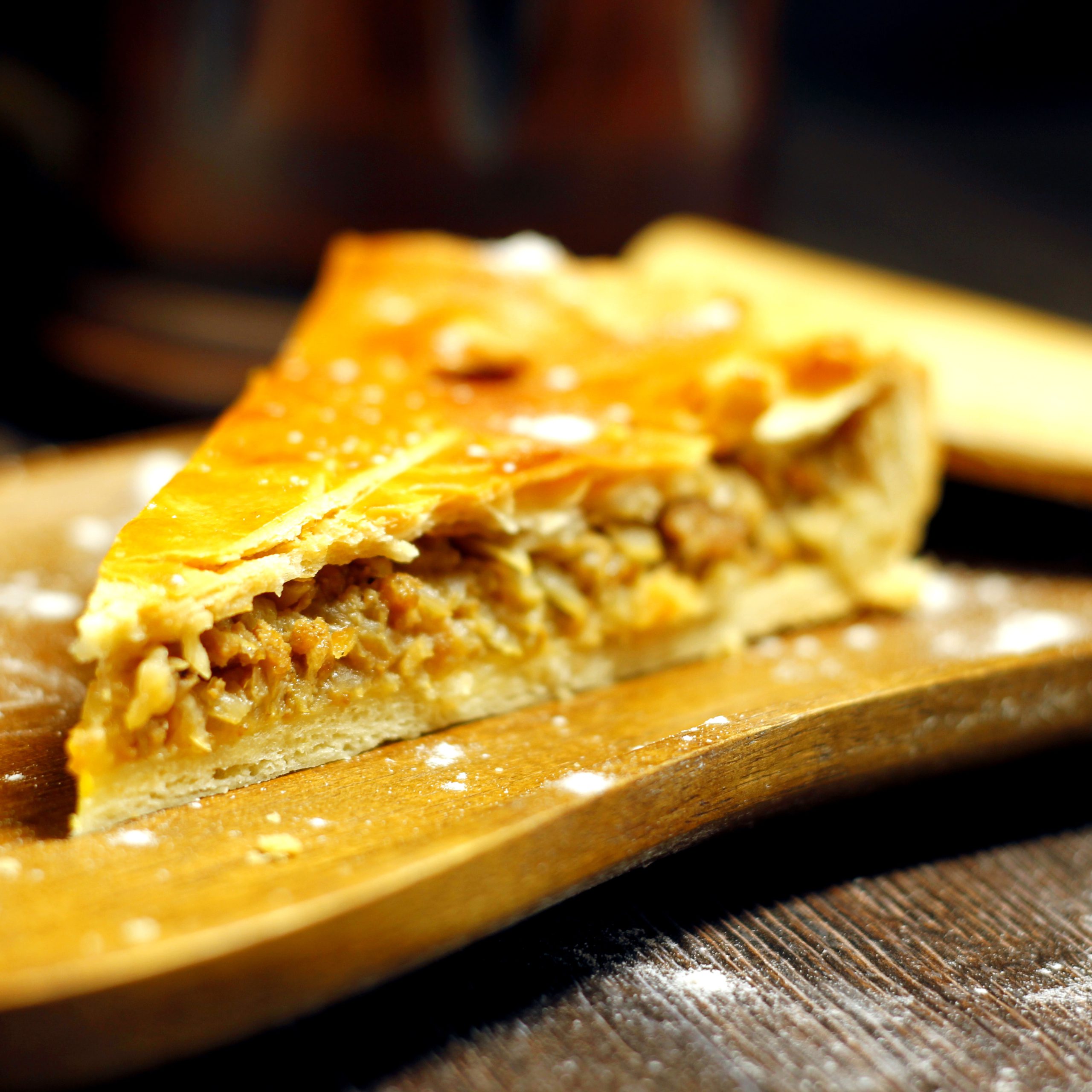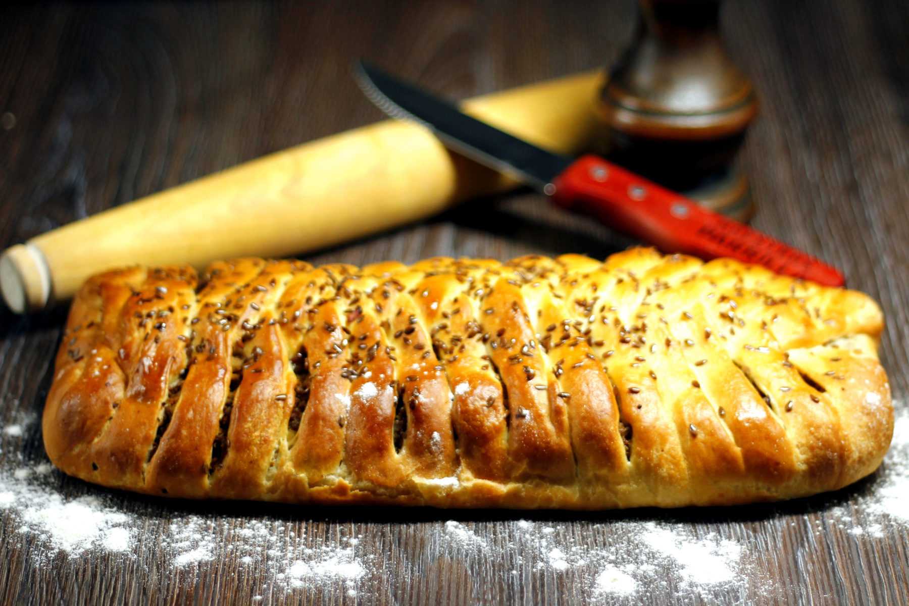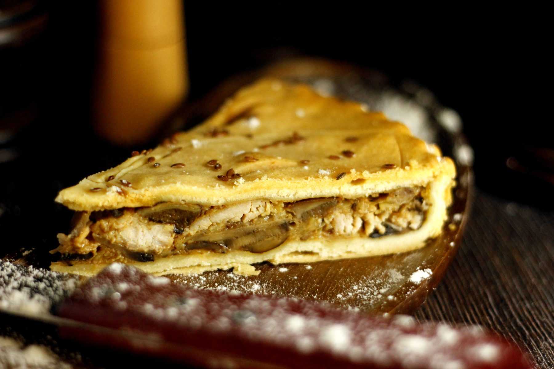 Mahlane täidis küpsetatud kanast ja suitsusest paprikast õrnal pärmilehttaignal annavad sellele pikantsele pirukale erilise koloriidi.