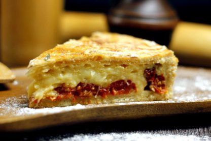 Mahlane täidis küpsetatud kanast ja suitsusest paprikast õrnal pärmilehttaignal annavad sellele pikantsele pirukale erilise koloriidi.